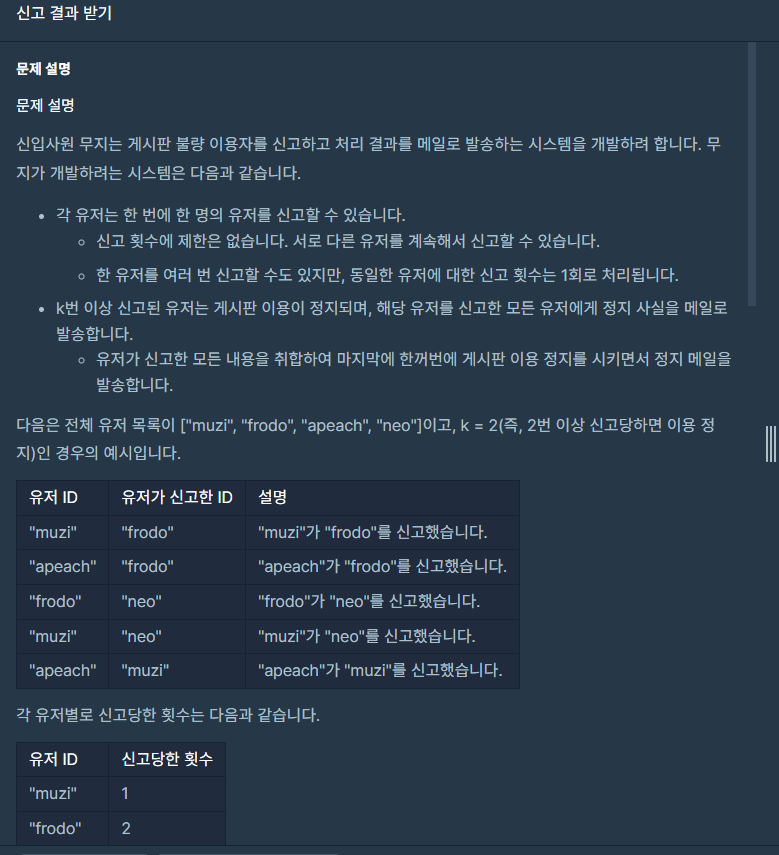 "muzi" : [2] //apeach 가 신고했으므로
