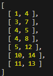 [[0,4], [5,10], [6,8], [8,9]]입니다.