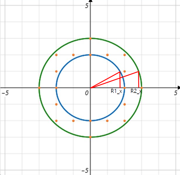 우선 한 원 안에 있는 정수 좌표 점의 개수를 구하는 방식은 다음과 같습니다.