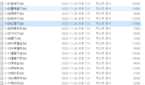 제가 얻은 원본 데이터는 각 성경마다 txt파일로 존재했습니다.
