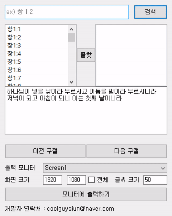 즐겨찾기 목록에 있는 구절 선택 후 모니터에 출력하면 제목이 바뀌지 않던 현상 수정했습니다.