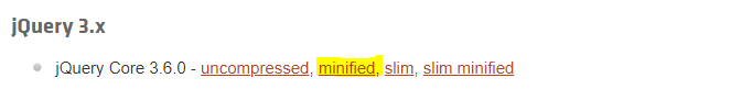 위 사이트에 가셔서 사용하고자 하는 jquery 버전의 minified를 클릭하셔서 나오는 코드를 복사하신 다음 붙여넣으면 됩니다.