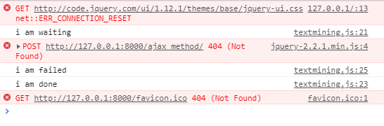 success : views.py에 데이터를 잘 보냈고 잘 받았다는 뜻입니다. function안에 있는 data는 ajax_method에서 return 한 데이터가 들어옵니다.