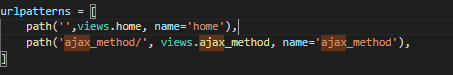 url : views.py에 있는 내가 이용하고자 하는 메서드를 입력합니다. 슬래쉬(/)를 먼저 입력한 이유는 root 디렉토리에서 ajax_method를 찾기 위함입니다.