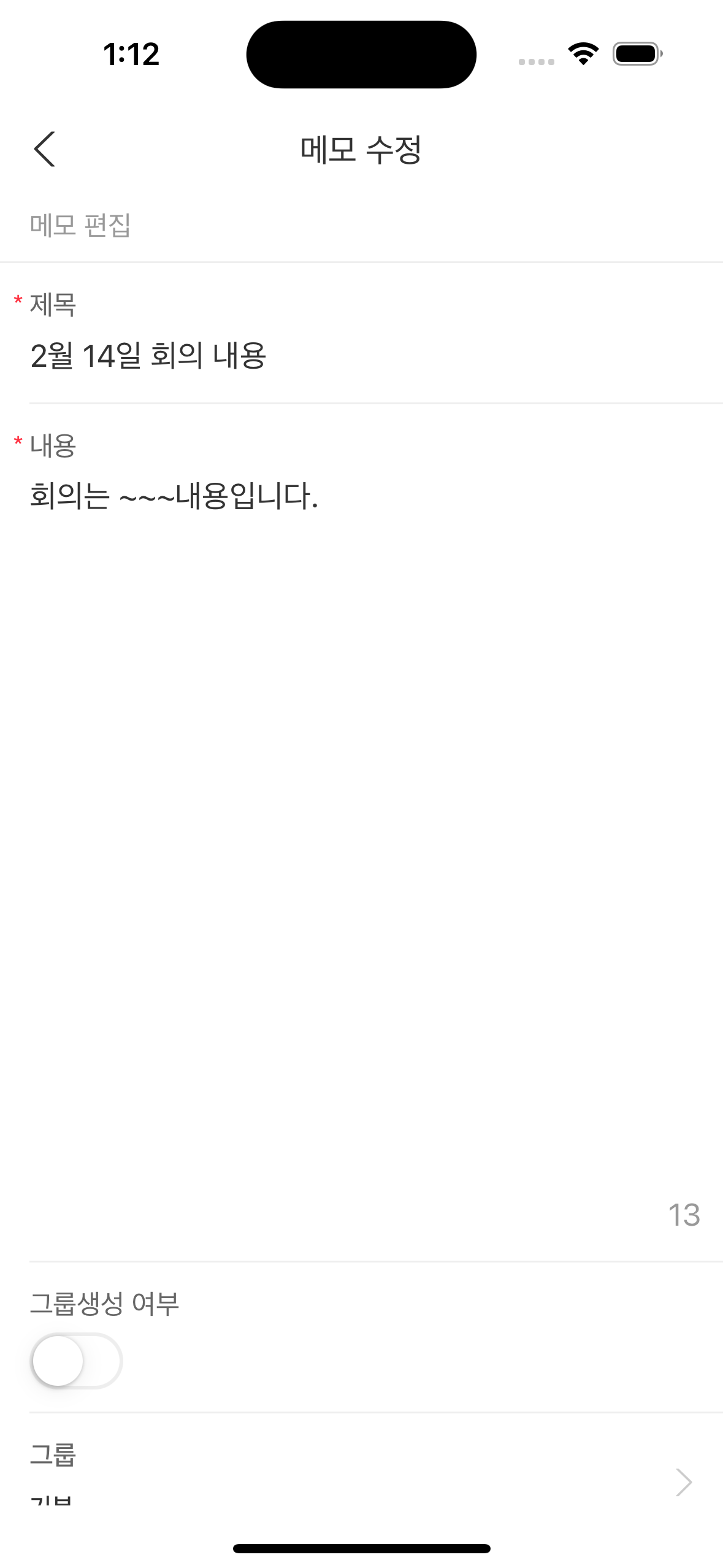 메모장입니다. 잊지 말아야 할 내용을 적어두고 언제든 편하게 다시 확인할 수 있습니다. 즐겨찾기를 통해 내가 꼭 다시 보고싶은 메모를 따로 지정할 수 있고 그룹 설정을 통해 같은 성격을 지닌 메모들을 하나의 그룹으로 묶어 관리할 수도 있습니다.