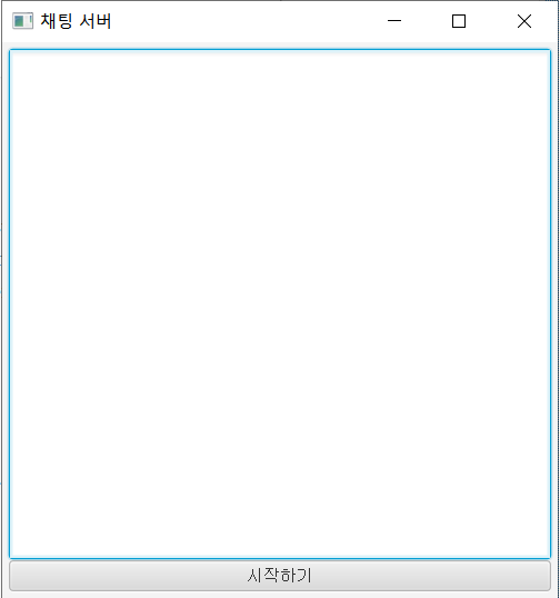 start 메서드는 UI를 구현하고 이벤트를 지정할 수 있습니다. 위 코드 중 중요한 부분은 [시작하기] 버튼이 눌렸을 때의 이벤트 부분입니다. 만약 버튼의 텍스트가 시작하기라면 startServer에 서버의 IP(127.0.0.1)과 포트번호(9876)을 인자로 넘겨주고, textArea에 [서버 시작] 이라는 메시지를 추가하고 버튼의 텍스트를 [종료하기]로 바꿉니다. 만약 버튼의 텍스트가 [종료하기]라면 stopServer()를 실행하여 서버를 끄고 반대의 과정을 거치죠.