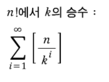 이 문제를 풀기 전에 팩토리얼과 승수의 관계를 알아야 한다. 예를 들어 5! 을 소인수 분해하면 2의 승수는 몇일까?