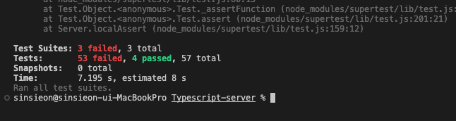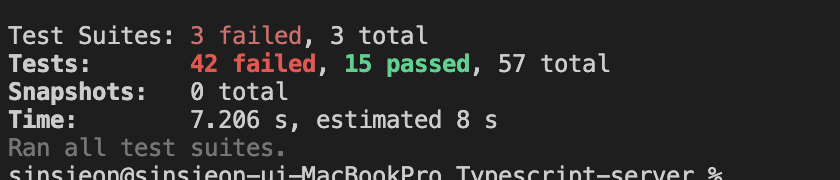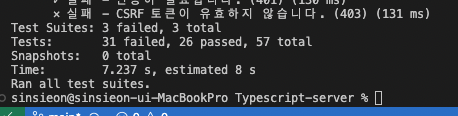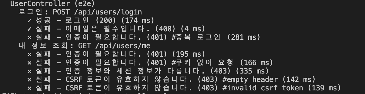 5개의 유닛 테스트 중 3개는 인증 여부 외의 체크를 진행하기 때문에 2개만 우선 통과했습니다.