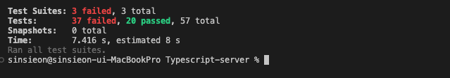총 세 개의 테스팅 파일과 57개의 유닛테스트를 진행합니다.
