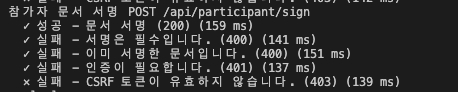 if (participant.status === "SIGNED") throw new BadRequestException(); //이미 서명을 했다면 400 에러를 뱉습니다.